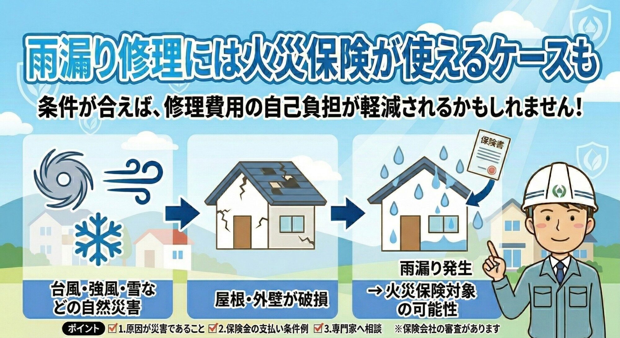雨漏りは見えない部分が多く、専門的な判断が必要です。