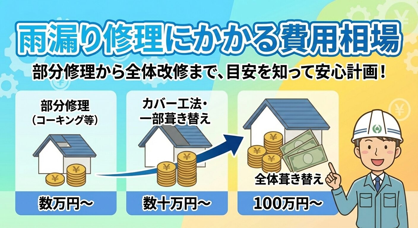雨漏り修理の費用は、同じように見える症状でも、部分的な補修で済む場合もあれば、屋根や外壁の改修が必要になるケースもあります。
