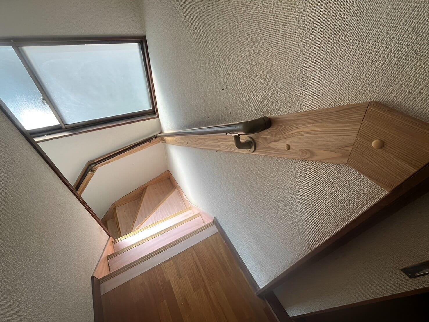 曲がり階段にも手すりを設置し、より安心できる動線に